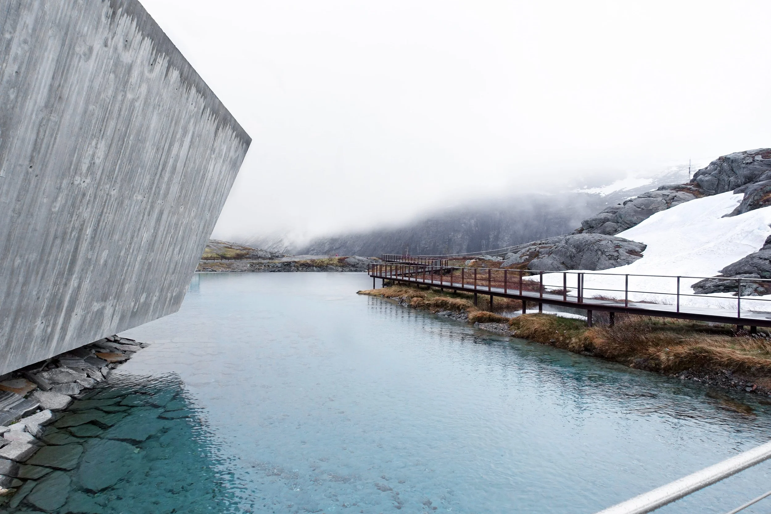 Trollstigvegen er en av Norges best besøkte turistattraksjoner og har en lang historie tilbake til 1936, da veien offisielt ble åpnet. Besøkssenteret som i dag ligger ved utsiktspunktet er tegnet av Reiulf Ramstad Arkitekter og ble ferdigstilt i 2012. Bygget ble i 2012 tildelt prisen Betongtavlen, en utmerkelse for fremragende bruk av betong.