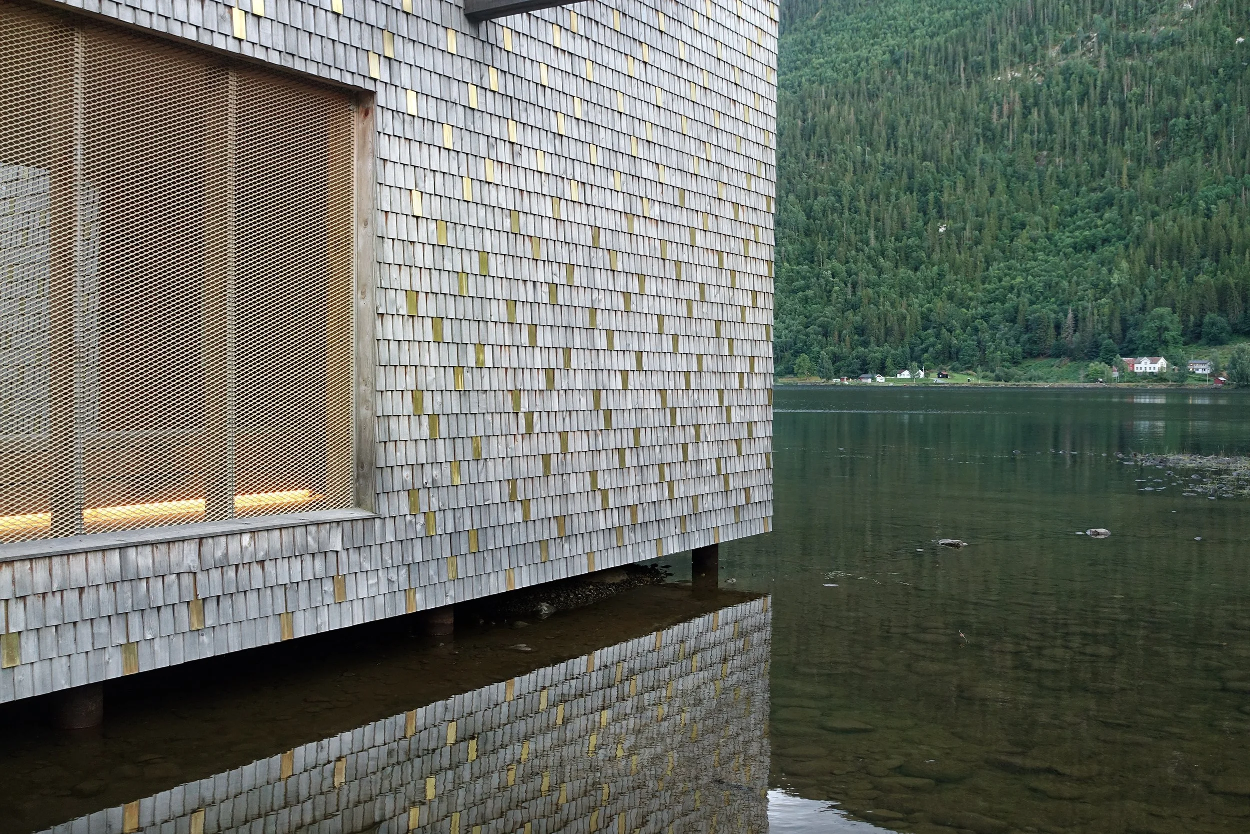 Etter noen dager på biltur gjennom Setesdalen ønsket vi å overnatte på det historiske Dalen Hotel. Etter innsjekk og utforsking av hotellet tok vi en kveldstur ned til den blikkstille innsjøen Bandak for å utforske saunaen.