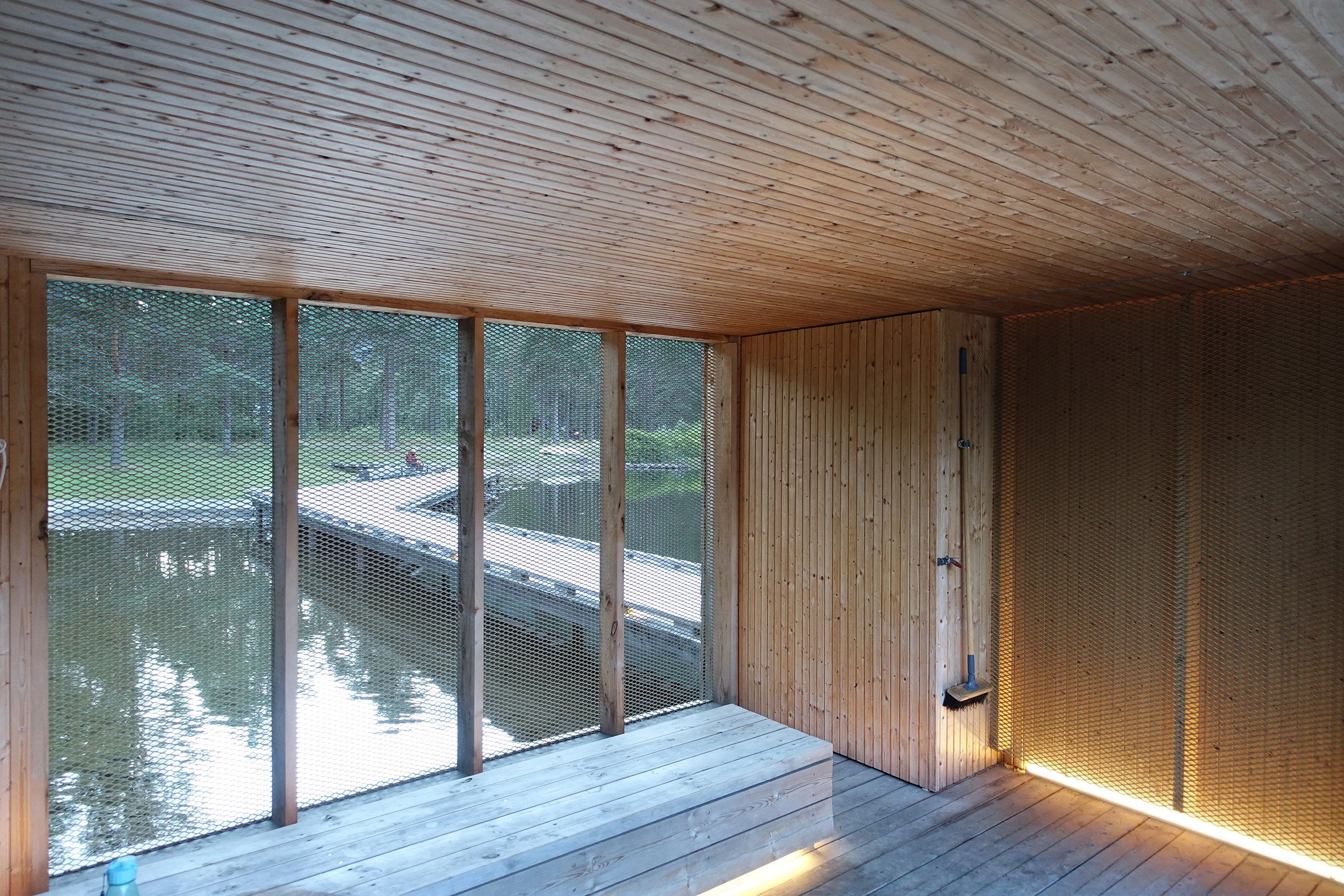 Soria Moria Sauna er laget av arkitekt Feste Sør, landskapsarkitekt Asplan Viak, lysdesign ÅF Lighting og kunstner Maira E. Klyvare.